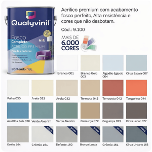Descubra o poder de uma pintura impecável. A Qualyvinil Fosco Completo entrega acabamento fosco perfeito, alta resistência e cores intensas que não desbotam — com mais de 6.000 possibilidades para você criar o ambiente dos seus sonhos. Ideal para quem exige qualidade premium, cobertura superior e resultado profissional desde a primeira demão.
